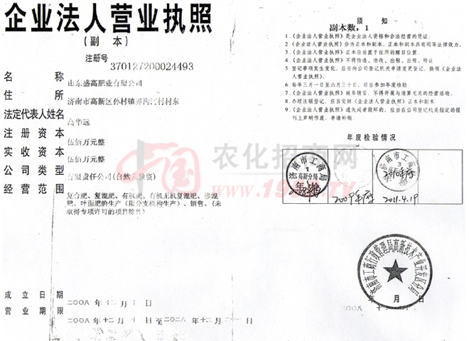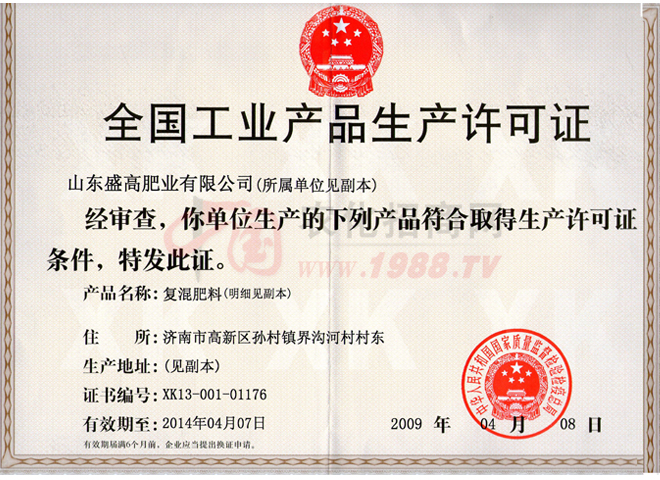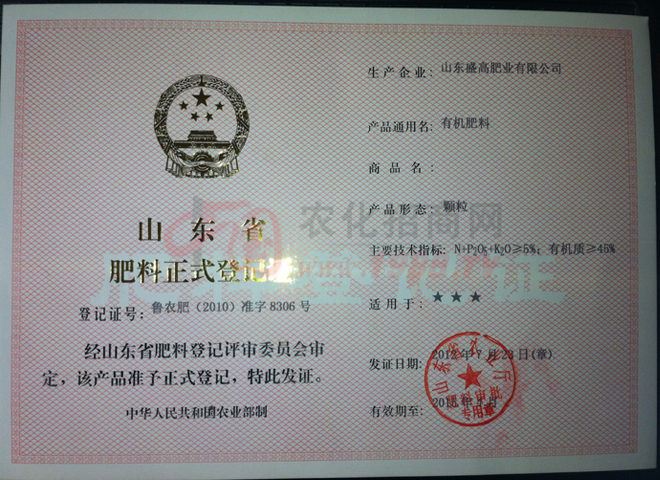 證書(shū)名稱:肥料正式登記證 發(fā)證機(jī)構(gòu):山東省農(nóng)業(yè)廳
